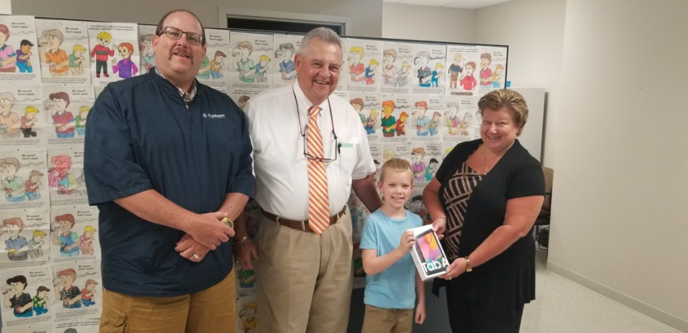 PS Solutions Foundation was thrilled to participate with a great partner, Altoona Lung Specialists, and their Lung Disease Foundation. The Lung Disease Foundation wanted to help educate kids on the dangers of smoking at a time when they weren’t in school. They worked to provide elementary students in Blair County with educational materials in the form of a coloring book as part of their “Be Smart, Say No To Smoking” Coloring Contest. They distributed approximately 1800-2000 coloring books and contest flyers in the Altoona School District, Hollidaysburg School District, and Tyrone School District. PS Solutions donated a Galaxy Tablet as the Grand Prize. Yesterday, Dr. George Zlupko, Sherri Stayer, and our own Joe Merilli presented the Grand Prize to the contest winner. Congratulations to the winner and thank you to Dr. Zlupko, Sherri Stayer, and our Friends at Altoona Lung Specialists for allowing us to be part of this campaign.